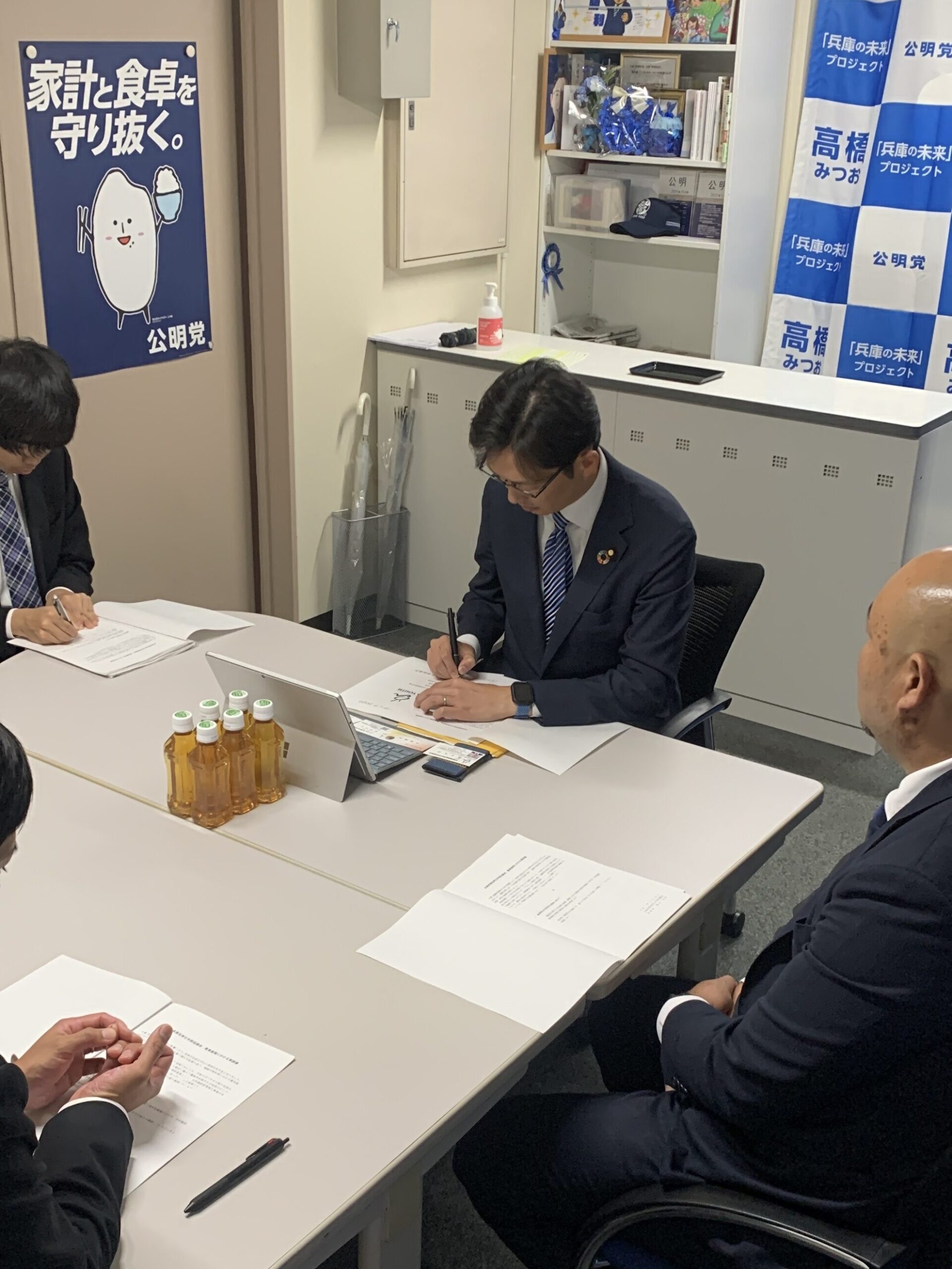 きょう神戸にて、兵庫県農協青壮年部協議会の代表の皆さんから、県内の農業振興に関する要請書を受け、約2時間にわたり現場が直面する課題について意見交換しました。