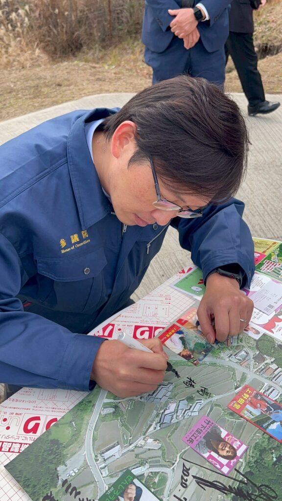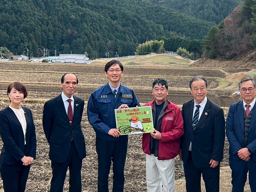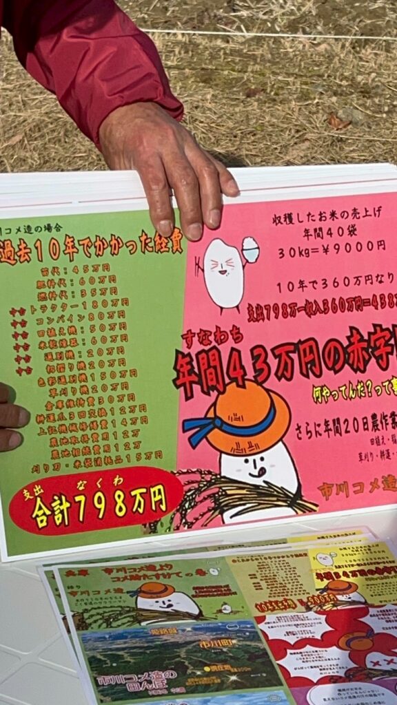市川町では、津田町長のご案内で、無農薬の棚田米を生産されている農家を訪問。手作りの紙芝居を通じて、経営の厳しさや小規模農家への支援を求める真摯なお声を伺いました。
