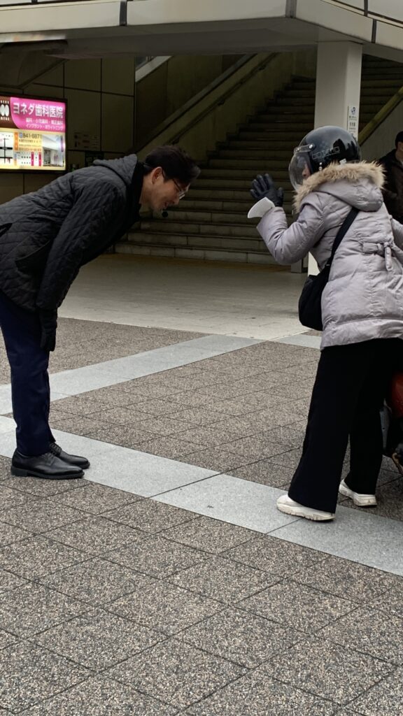 今朝は、地元・神戸市東灘区のJR住吉駅前で、岩佐けんや市議とともに朝の立礼からスタートしました🏃♂️