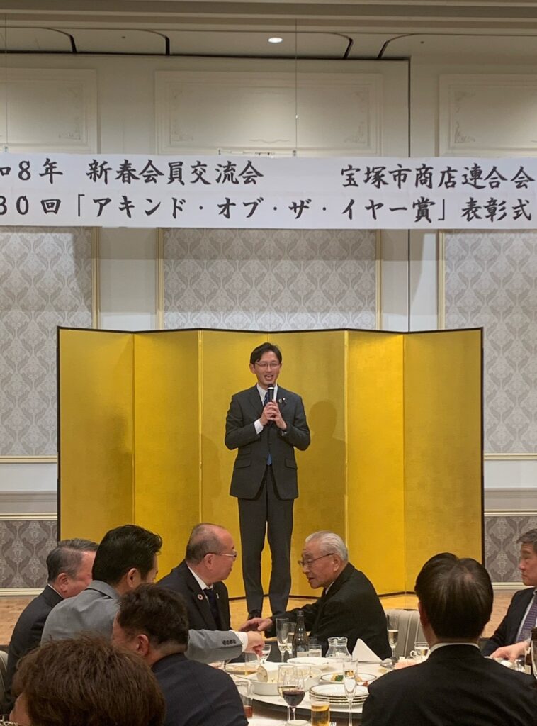 夜は、宝塚市商店連合会の新春会員交流会へ。佳節となる30回目のアキンド・オブ・ザ・イヤー賞🏆をご受賞された皆さま、誠におめでとうございました❗️