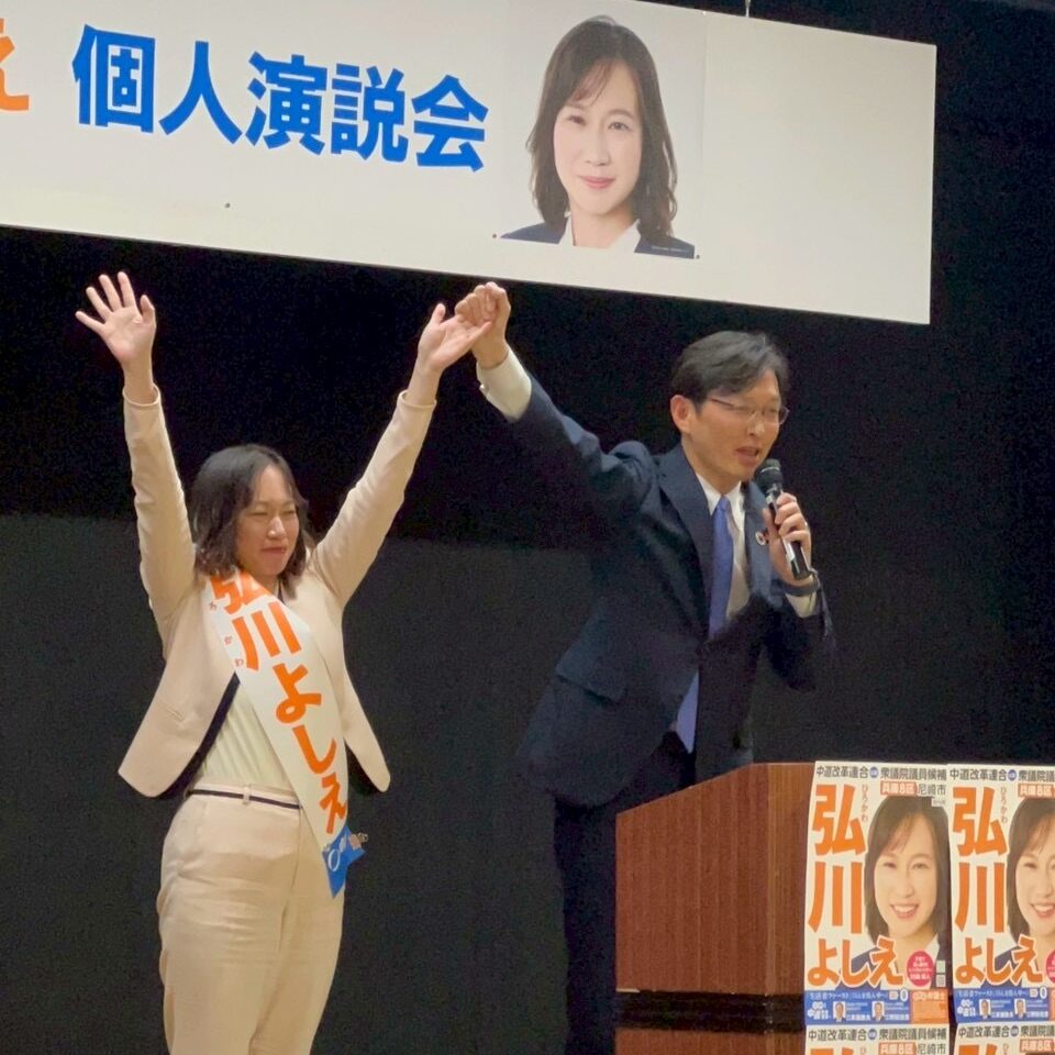 夜は、尼崎にて兵庫8区・中道公認候補弘川よしえ 候補の個人演説会に参加✊
