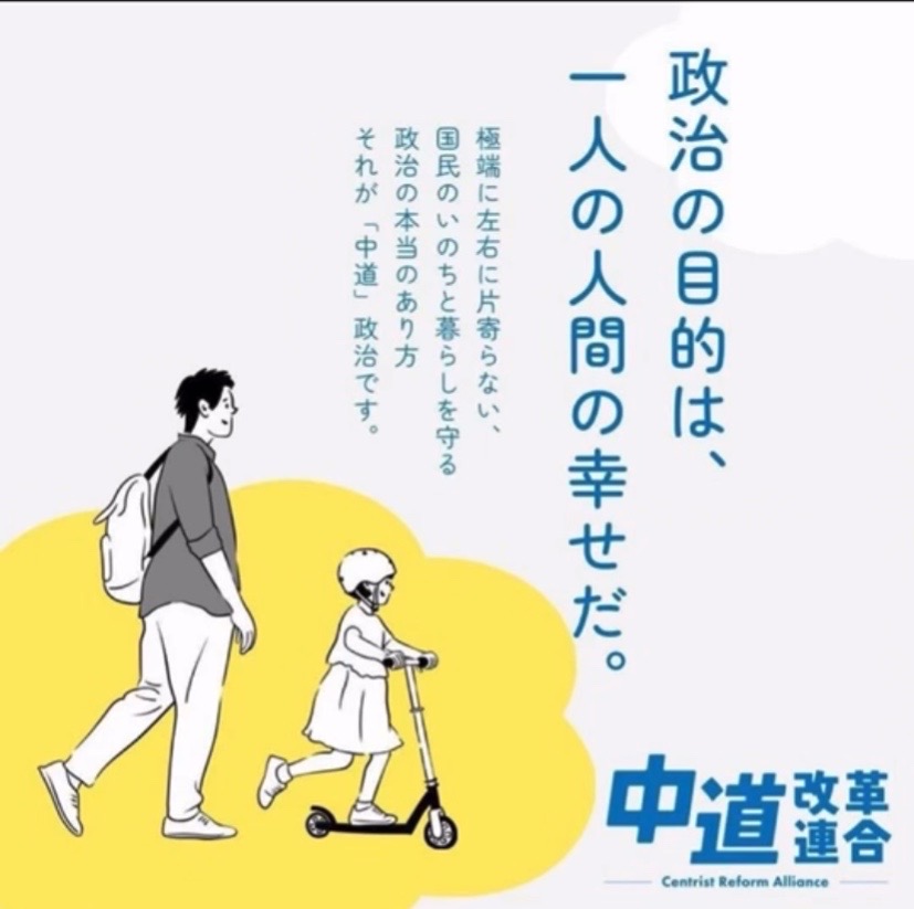 ぜひ、小選挙区は中道候補へ、比例代表は全国どこでも「中道」とお決めください。